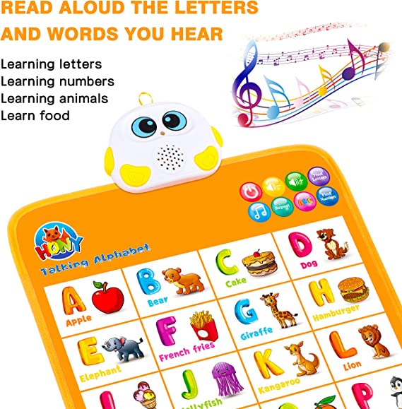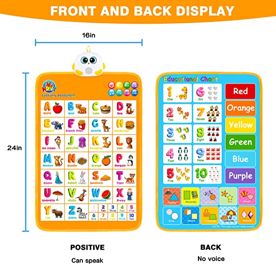 This talking ABC & 123s wall poster is the perfect learning tool that is interactive and tactile. Best feature is that speaker activated by touching the picture, letter, or number instead of a speaker “button”. Educational toys not only bring your kids’ hours of fun, but also help them get a head start on numbers and letters.