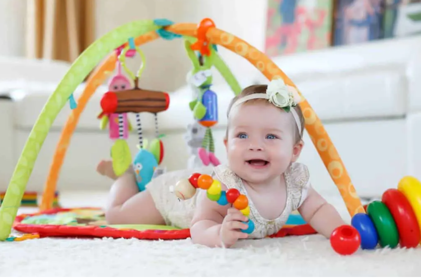 6.Customized Baby Toys : Fun for newborns on up, this easy-to-assemble toy is appropriate for so many phases of newborn development. Use it as a playmat, a kick-at musical instrument, and then later a piano for sitting babies. Parents appreciate how engaging the gym is, especially for active babies.
