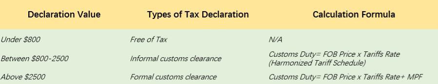 Value over $2500: You need to apply for regular customs clearance and then pay customs duties and MPF. (Note: The calculation method of anti-dumping products and countervailing products is different from the above)