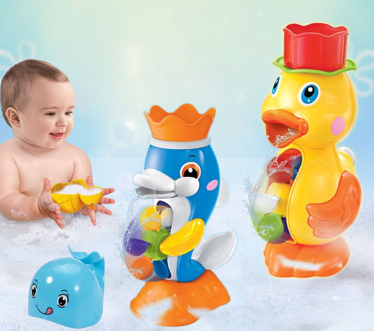 interesting EXPORTER BABY BATH TOY can attract baby’s attention. If you pour water with a cup or spoon and pour it into the top of the water shower, the caterpillar sprayed water through its pouring, and the eyes of the octopus and stars rotate with the stream. Also, the orange windmill spins while splashing water.