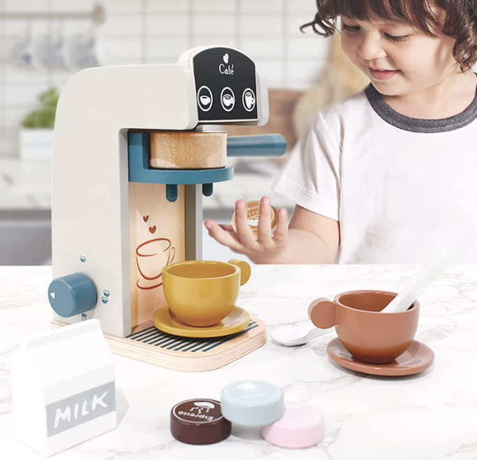 Great OEM Wooden Toys Coffee Maker for kids 3+ is Unique designed Toy Coffee Maker: Your littles will not just use imagination for pretend play, thanks to its functional filter, coffee pods will REAL drop into the cup! This adorable kids coffee maker playset will hold their attention longer!