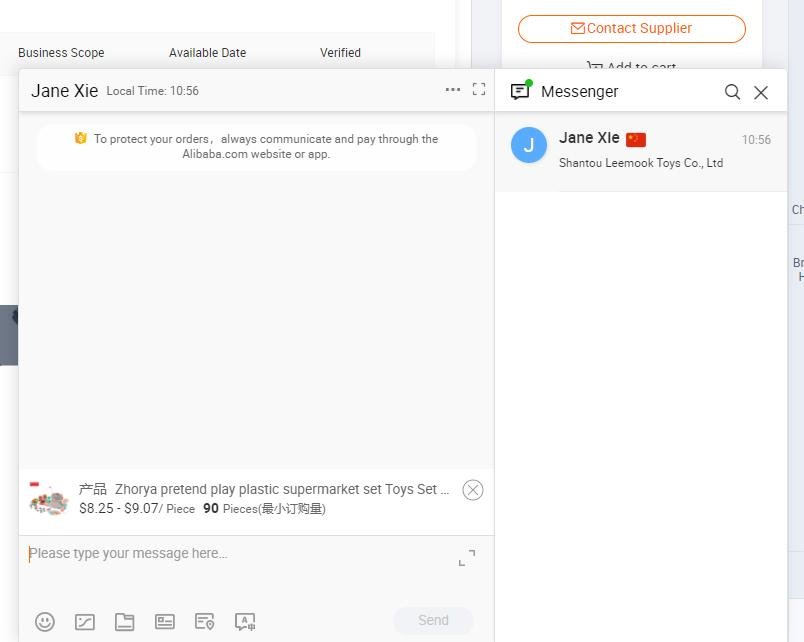 (2) Click the “chat now” button. You can see the “chat now” icon above the company name. This is a kind of instant conversation, which can communicate with toy manufacturers quickly and directly.