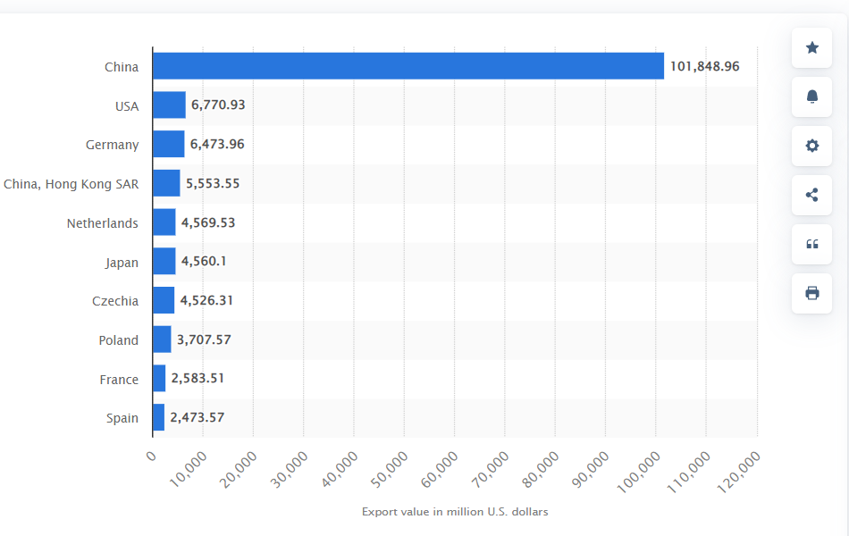 It is notable that the largest exporter of toys in 2021 was China, which was $101.85 billion, a 16-fold difference from the second largest exporter, the United States, which was $6.77 billion.