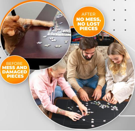 Tt can be Rapid Cleanup Without Any Mess or Lost Pieces – Save time and energy with a puzzle roll that makes cleanup as easy as 1-2-3. Simply connect the foam tubes, roll with the puzzle saver mat, then place the item in the bag for safe storage. Say goodbye to messes from pets and children, while never losing a single piece of the puzzle.