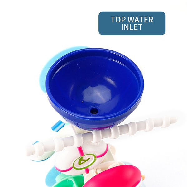 interesting OEM BATH WATER TOY can attract baby’s attention. If you pour water with a cup or spoon and pour it into the top of the water shower, the caterpillar sprayed water through its pouring, and the eyes of the octopus and stars rotate with the stream. Also, the orange windmill spins while splashing water.