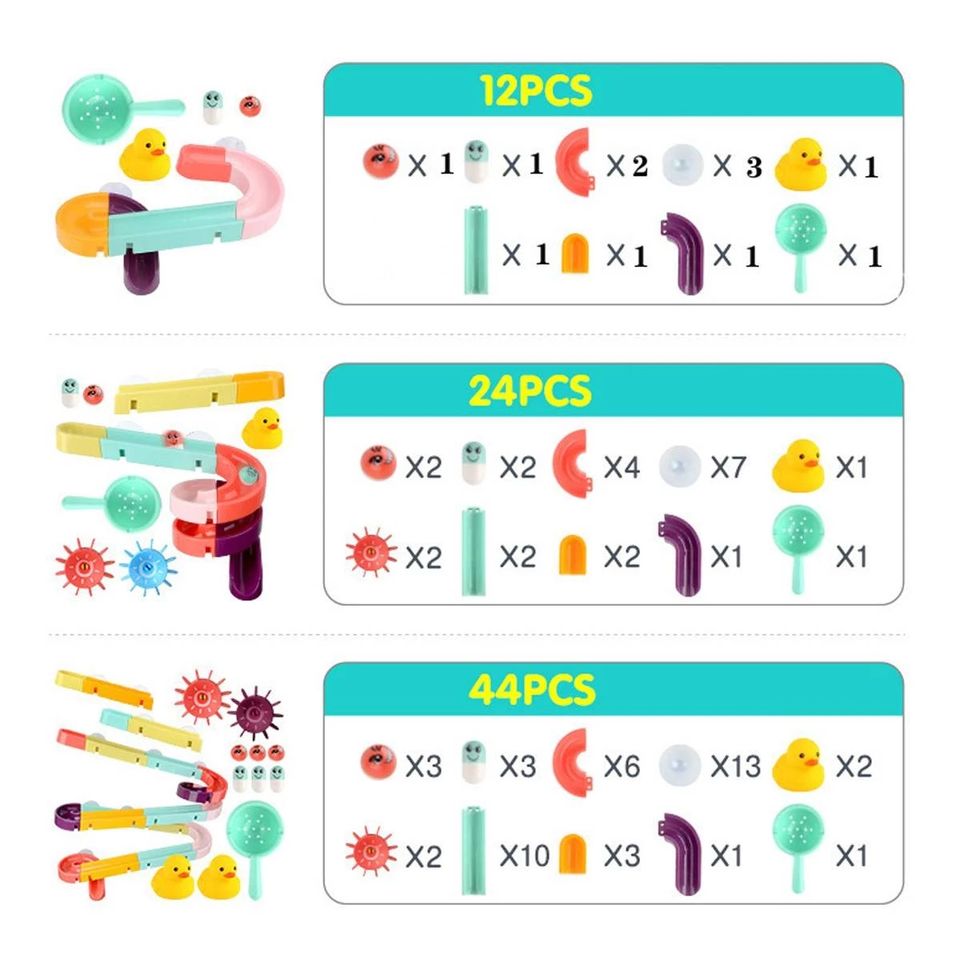 This marble runs track toys for bath time are able to develop babies’ hands-on skills, imagination, creativity, hand-eye coordination ability and improve their color perception. It is a perfect gift/prize for toddlers.