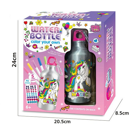 With the OEM DIY bottle coloring craft kit, you can stay hydrated in style. This kit contains everything you need to decorate a unique water bottle (designs may vary).Great gift for anyone who is creative and it is perfect as a solo project or as a group activity for birthday parties, sleepovers and any other fun get-togethers.Let your imagination go wild as you create a unique masterpiece.