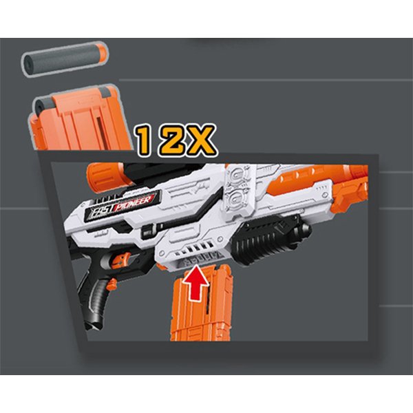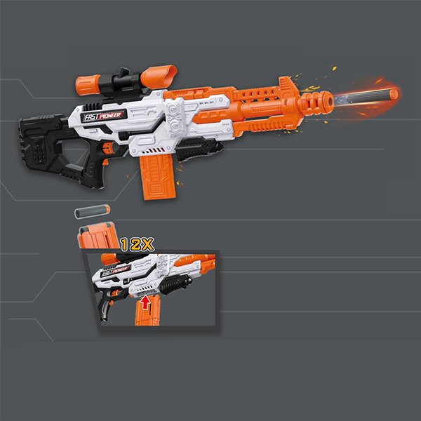 OEM Electrical blaster GUN equipped with 14pcs Soft EVA foam dart, sponge material will not be injured when hit, no harm to children. Foam dart size: 13*38mm. Don’t use other size darts to this toy gun.