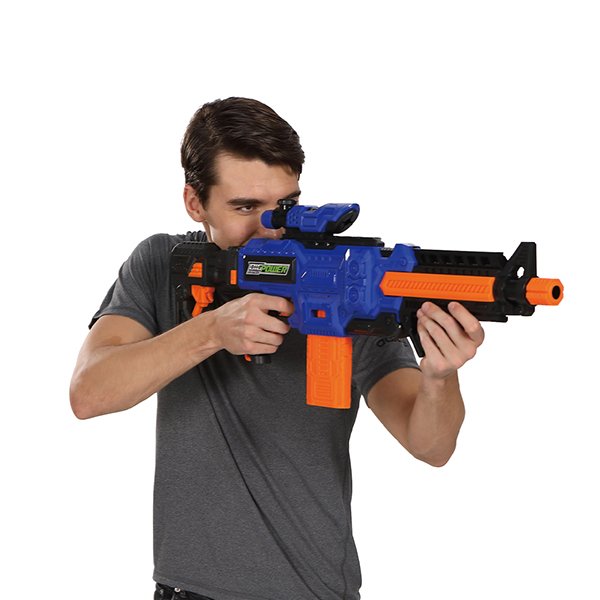 Our manual OEM Electrical blaster GUN is made of premium ABS material, safety for children. Using 13*38mm soft foam darts. No harm to children! Enjoy happy outdoor games with our toy gun now!