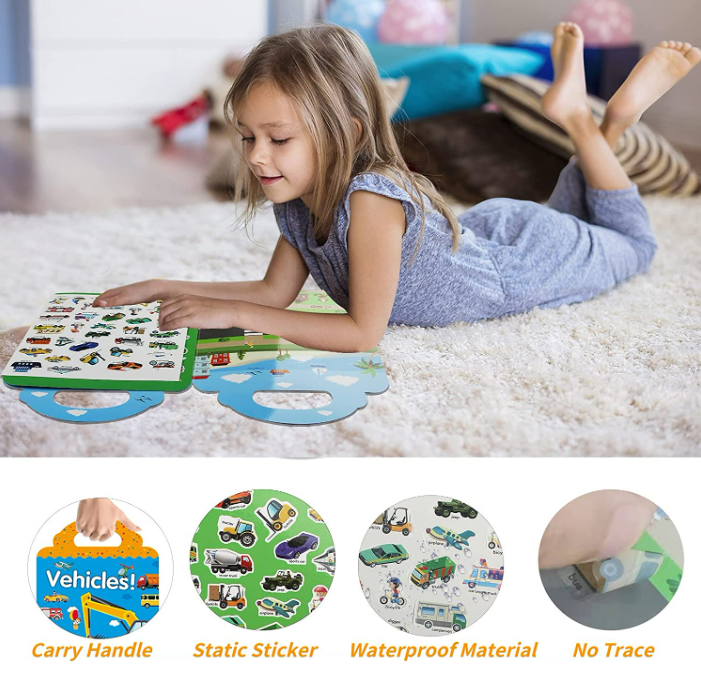 Our Reusable Sticker Book have many themes for kids play imagination, so that can compose different story. Play Sticker book will train little one concentration, learn the word and shape. All of which are beautifully designed, high quality, waterproof and sunscreen, and reusable, tear-off without trace.