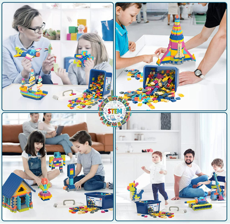 This building block toys sets can be used for single or multi-person party entertainment, allowing children to play together and share great moments with each other, and is also perfect for hours of parent-child bonding. Can be used for color sorting and stacking, which can help children learn about colors and construction, and stimulate imagination and creativity. Easy to build and easy to put away for storage.