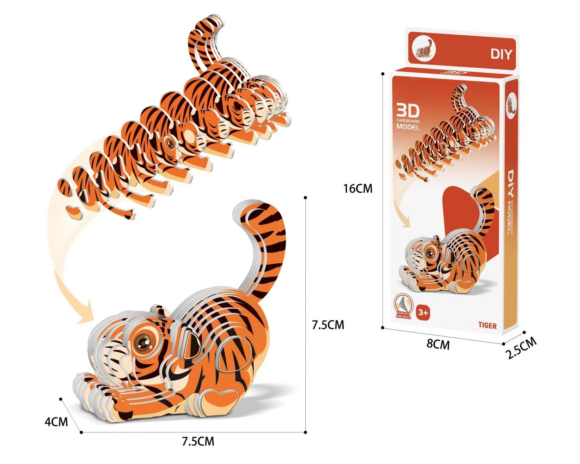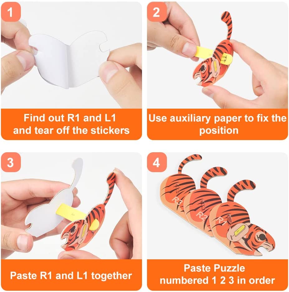 This OEM 3D tiger puzzle is a fun craft activity, the back of each cardboard is covered with self-adhesive stickers, kids can assemble a three-dimensional and vivid tiger without glue. It is non-toxic and harmless, so it will not be harmful to the skin of children.
