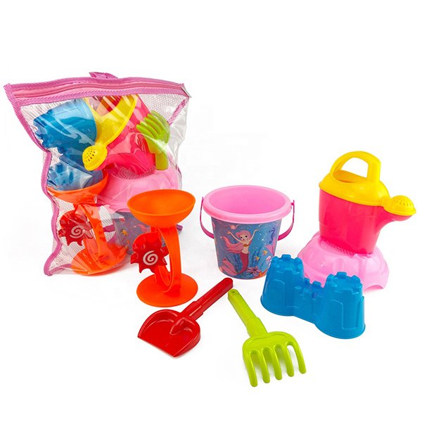 Our wholesale 7pcs bucket castle building kit uesd Eco -friendly material,safe for kids.