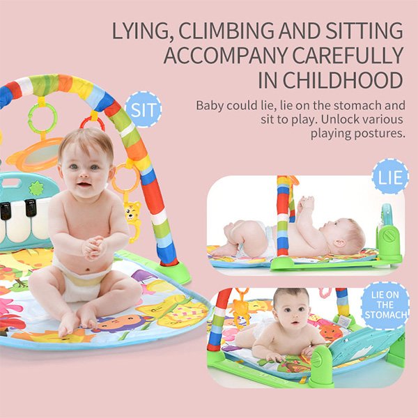 1.The wholesale activity gym mat provides a much Interactiveactivity center for babies, including 5 detachable colorful hanging rattles and graceful piano music which can be used for Lying, Sitting, Tummy Time, Kick, Play & Take-Along.