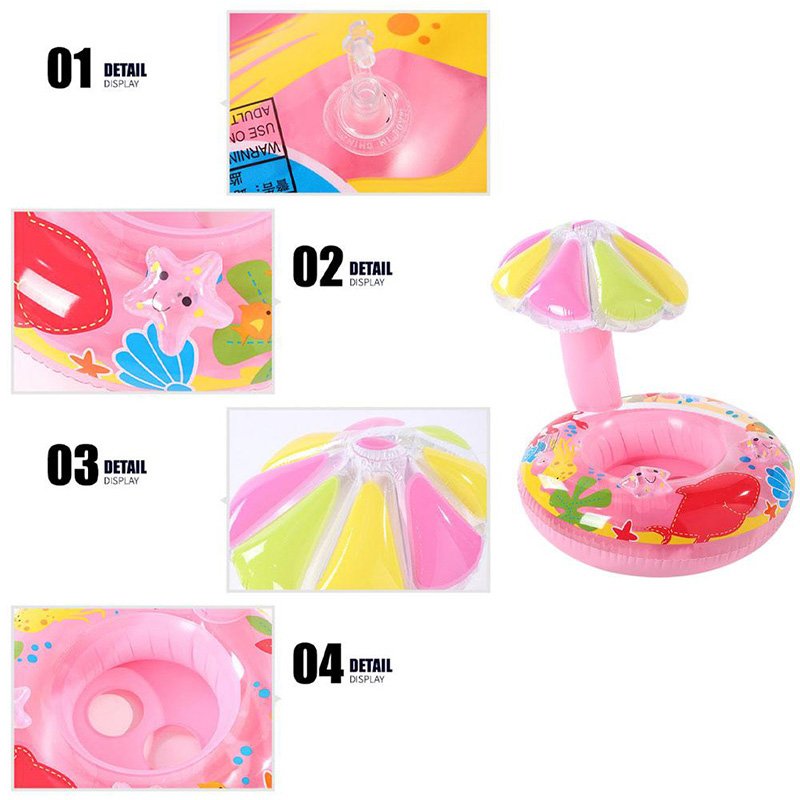 Mushroom shape Wholesale Baby Swim Float seat is well made of environmentally-friendly PVC with umbrella design. It is specially designed for protecting baby more safe and free to swim. It folds easily for storage and transport, great for travel carrying. Perfect for kids who are learning to swim. There is no doubt that this Wholesale Baby Swim Float seat help you to have more fun with your baby in the pool during the summer.