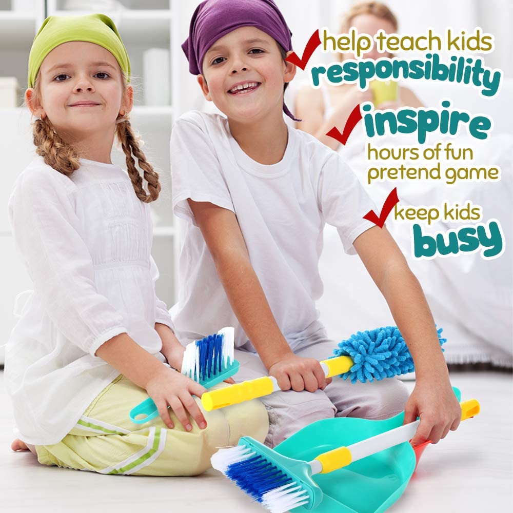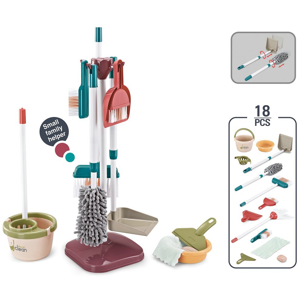 toddler cleaning set to motivate your child to model independence and use their imagination to have fun; Each cleaning tool gives them an imagined role and pretends task to try.