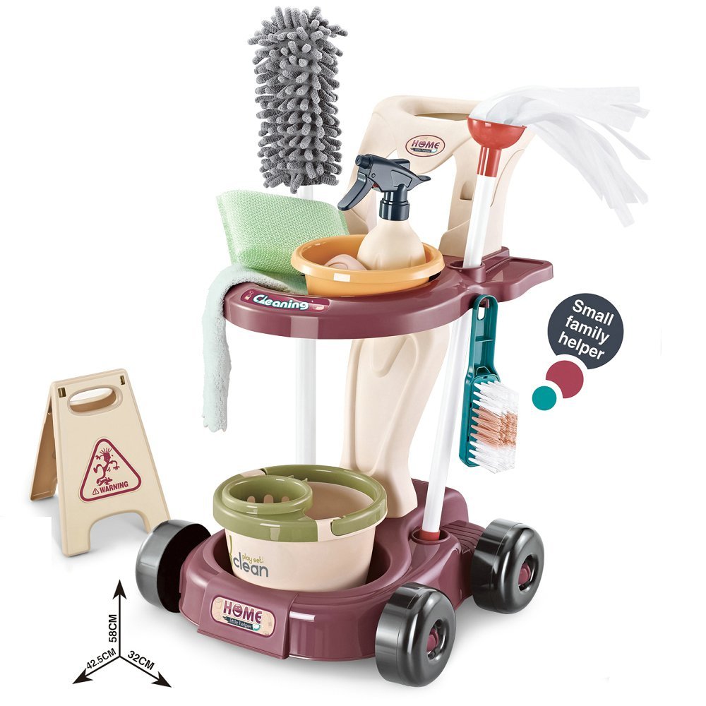 Little ones love to act like adults especially when it comes to cleaning. You teach them to be responsible from an early age when you let them help you with the household tasks. It inspires your kid’s sense of responsibility as they imitate the way adults clean. It enhances confidence, motor & hands-on skills. So the next time you are busy cleaning, let your kid help using this set of great educational toy kids cleaning set cart.