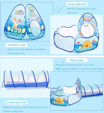 This kind of play tent have breathable mesh and anti-mosquito design, so baby will not stuffy while playing inside. And we have high density sewing, which makes the play tent strong and durable. What’ s more, we also use memory spring steel wire with high strength and high toughness, so the tent can have a long time folding without deformation.