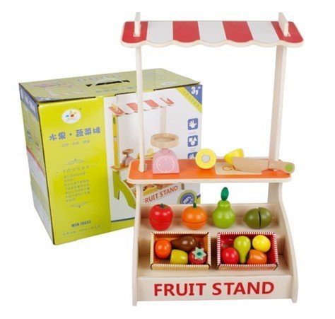 Constructed of real wood, this fresh market has nicely sanded edges, ideal for little hands. This brightly colored market stand creates a realistic shopping experience for your little ones, keeping them entertained for hours!
