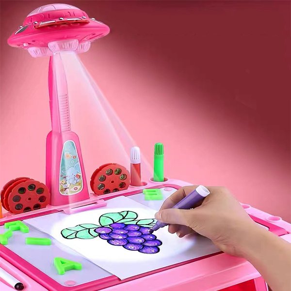 The legs of the educational drawing projector are easy to disassembly and assembly, allowing the board to be used in three ways: flat,upright and inclined.Whether on the floor or on a table, children can choose the most suitable form and use this board freely and easily.The drawing board enables kids to express themselves artistically and inspire their imaginations.Also the drawing game help to exercise hand-eye coordination and color perception.