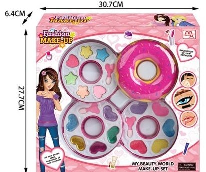 Little girls are interested in makeup, but adult products are not good for children’s skin. So this kind of toy is suitable for children, chemically safe, lead-free and no danger. Because certificates are clear, such as EN71, 8P, CD, ASTM, CPSIA (HR4040) and so on. This project has two series: one is a lollipop, and the other is a doughnut. Each series has three different designs. Series or designed OEM is valid.