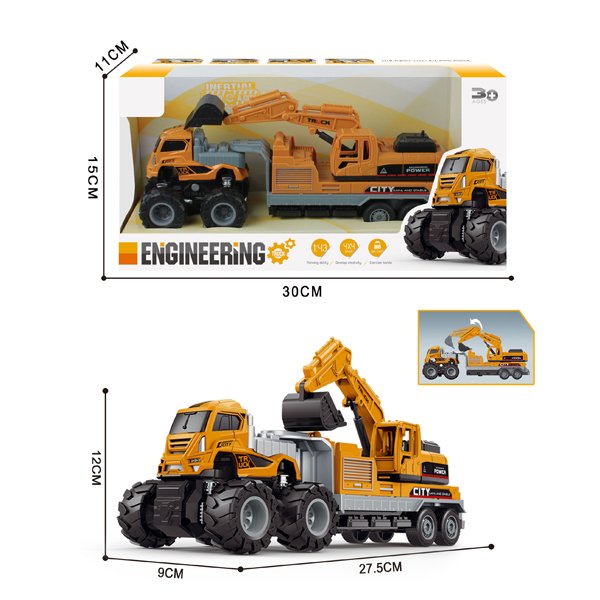 The engineering vehicle toy mainly contains two colors, dark yellow and black. There are many kinds of engineering vehicles get supplied, like Crane, carrier, mixer, excavator, mixer, and so on. OEM services are available. Children will learn more if playing such cars, each car with different function in our daily life.