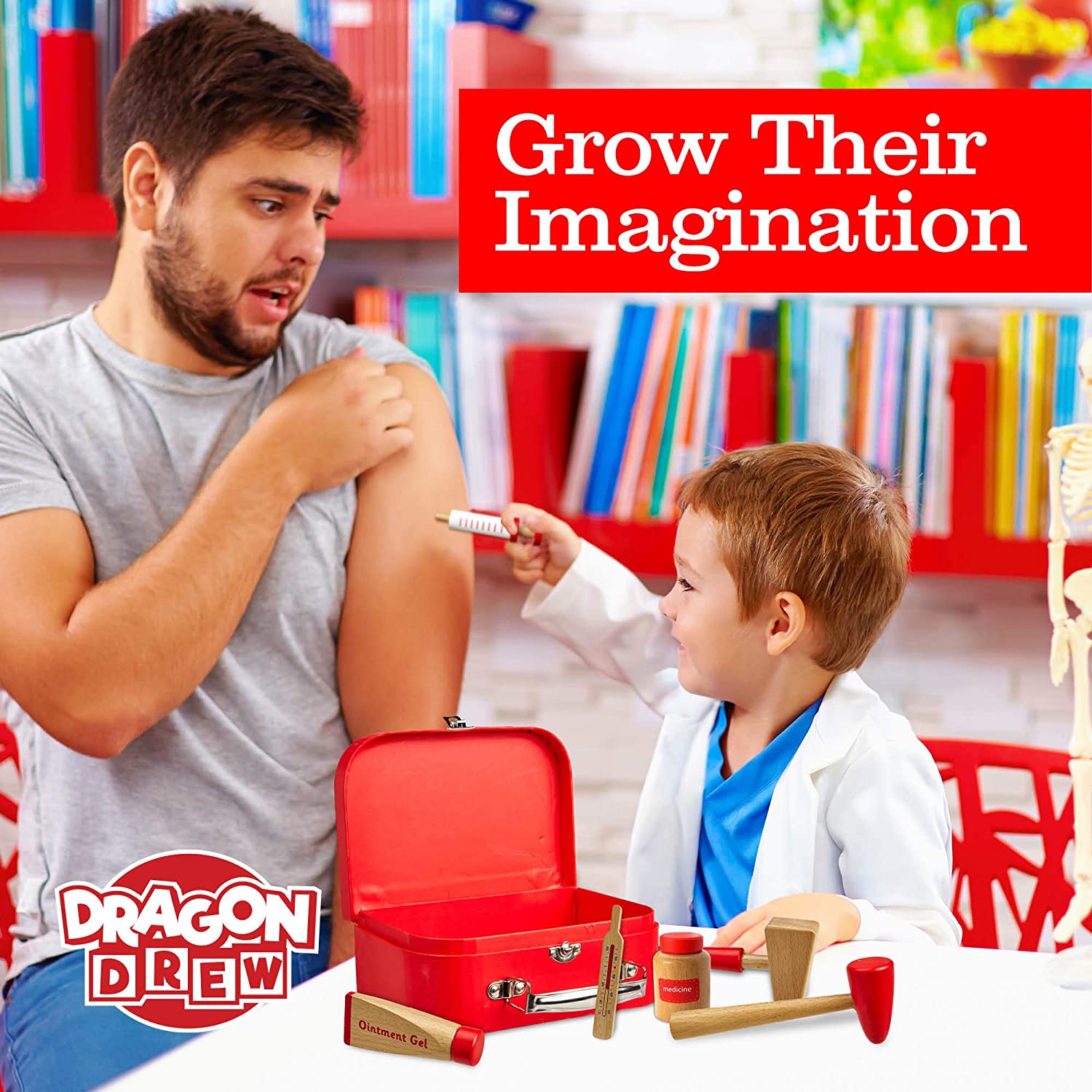 Ease your child’s doctor visits as his comfort level with doctor tools becomes more familiar with him. Helps to enhance children’s knowledge in the health care industry while experiencing being a doctor or nurse.Roll play encourages imaginative thinking, social skills, questioning and reasoning.