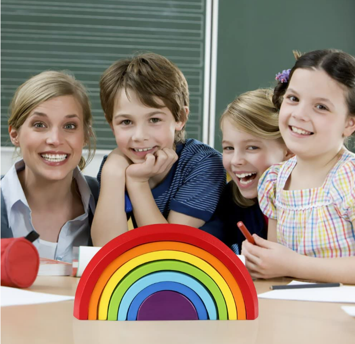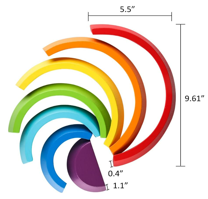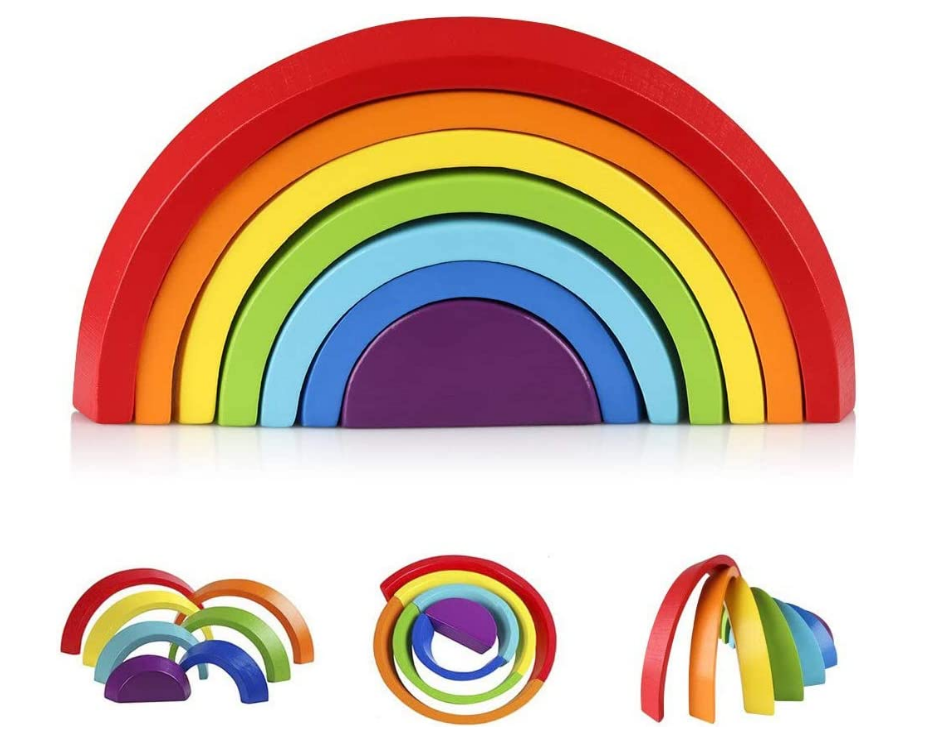 Wooden Rainbow Stacker Nesting Puzzle Blocks With 7 different shaped & color wooden pieces, coupled together into a rainbow shape, this toy set introduces a certain amount of realism that your kids will absolutely be fascinated with!